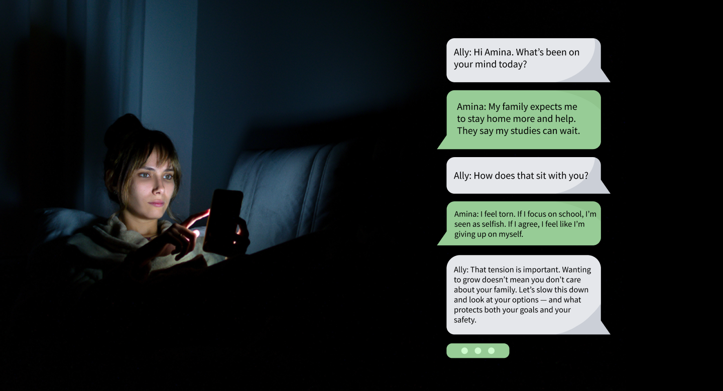Ally AI empowers adolescent girls to overcome inequality by building agency and social skills needed to navigate gender norms.